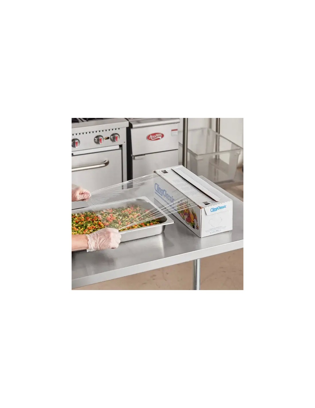 - Large film width is perfect for covering big containers or bulky food items with large surface areas